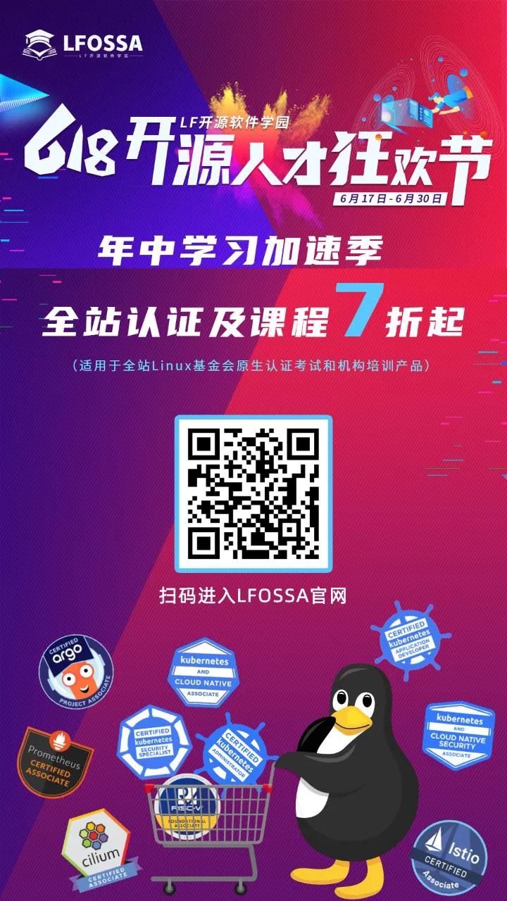 进入年中学习加速季, 6月17日- 6月30日期间,LF开源软件学园举行618开源人才狂欢节,全站培训及认证产品7 折起,大家把握时机,进一步提升您的开源技能,开启你的开源事业!我们即将公布更多活动的消息!